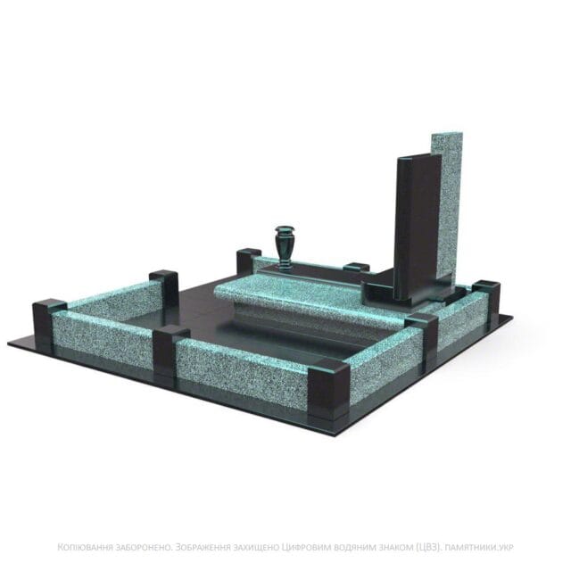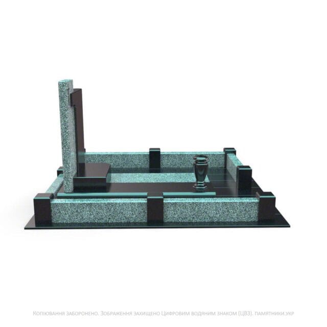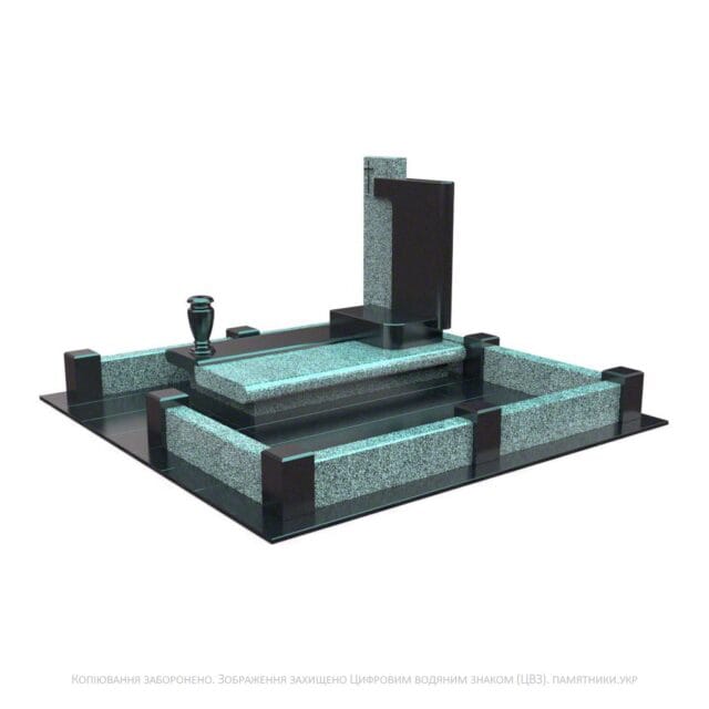 The monument for a man is made of gray and black granite. Both types of material blend seamlessly into each other on the tombstone, creating a very unusual impression.