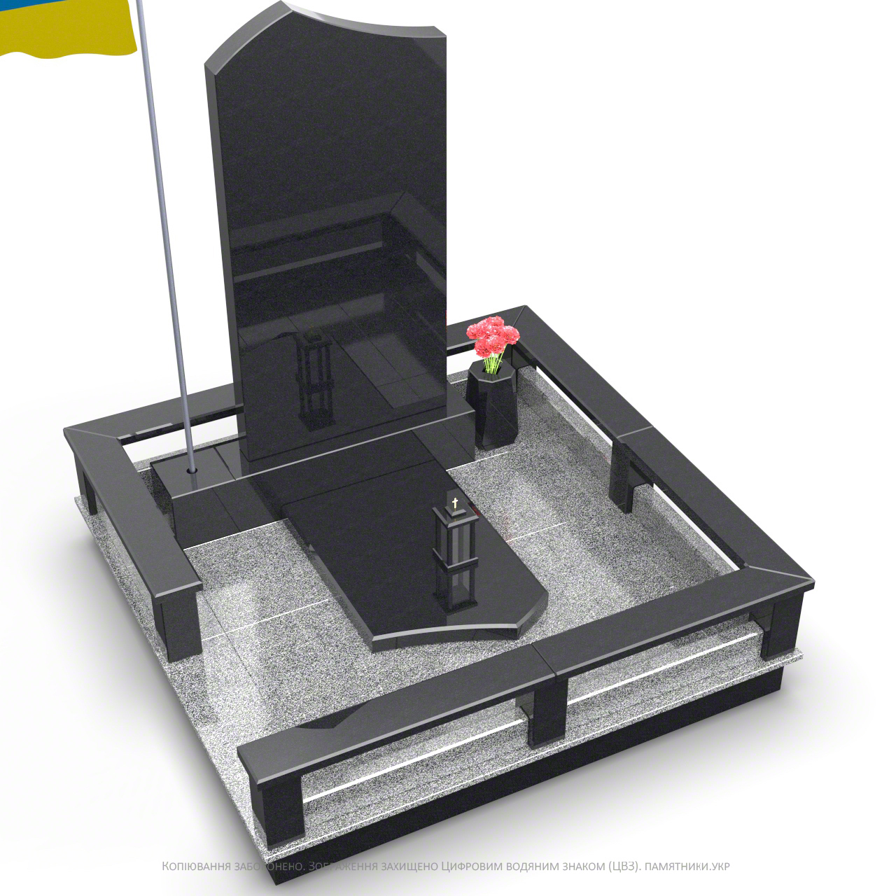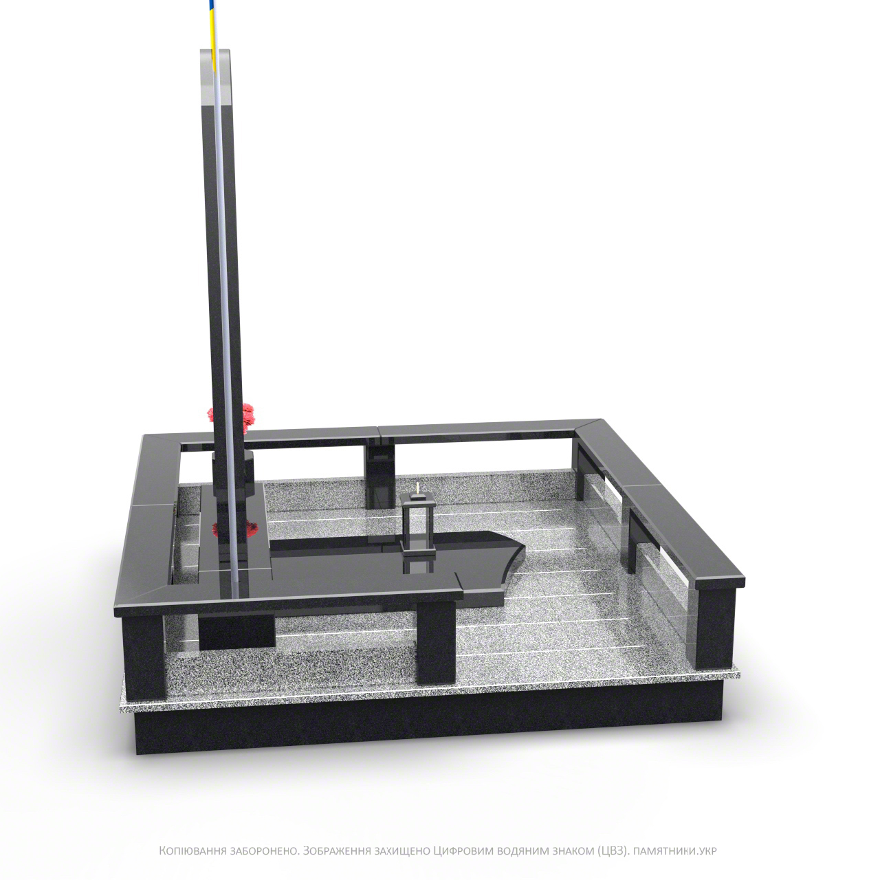 Монумент может быть доукомплектован столиком, лавкой.
