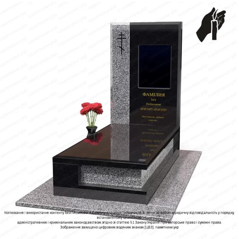 Памятник S46 выполнен из черного и серого гранита, что придает ему необычную и элегантную эстетику. Его строгие линии и гармоничные формы делают памятник истинным произведением искусства, которое прекрасно вписывается в любое окружение. Дополнение в виде стеклянной фотопанели добавляет современности и создает уникальную атмосферу. Такие памятники становятся не только местом памяти, но и символом уважения к ушедшим.