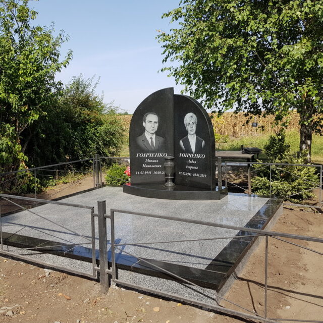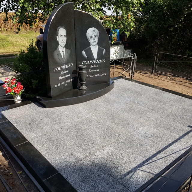 Памятник для Гонченко ОписаниеРазмерЦена Памятник для Гонченко М.Н. и Гонченко Л.Е.. ширина-270см длина-210см высота-141см. Памятники 120см высотой. Примерная стоимость от – 30000грн