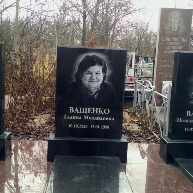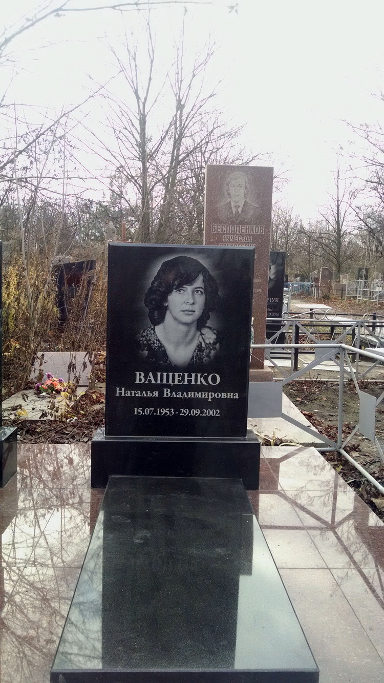 Памятник для Ващиных был изготовлен Мастерской памятников и установлен на Сурсколитовском кладбище(Днепропетровск),