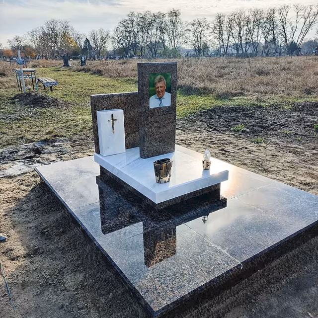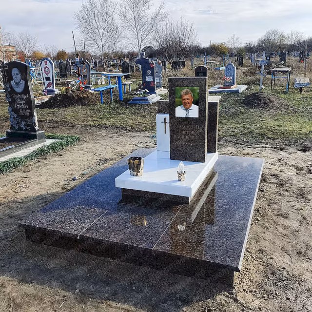 Изготовлен и установлен гранитный памятник на могилу с индивидуальным дизайном. В работе использован натуральный гранит высокого качества, устойчивый к перепадам температур, влаге и ультрафиолету, что гарантирует долговечность мемориала на десятки лет.