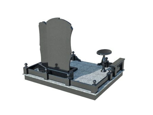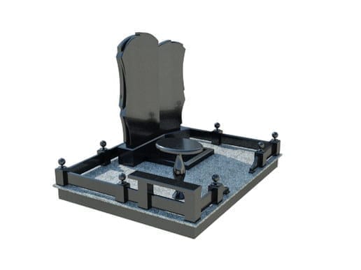 Классическое сочетание серого и черного гранита в этом мемориальном комплексе способствует созданию торжественного и величественного облика. Надгробие выполнено в виде двух плит, поставленных под небольшим углом друг к другу – это делает его подходящим для использования на семейных захоронениях. Изящества композиции добавляют плавные линии памятника и округлые навершия столбов оградки. Остальные элементы лаконично вписываются в общую архитектуру: аккуратный столик круглой формы на фигурной ножке и скамейка, совмещенная с низкой оградой.